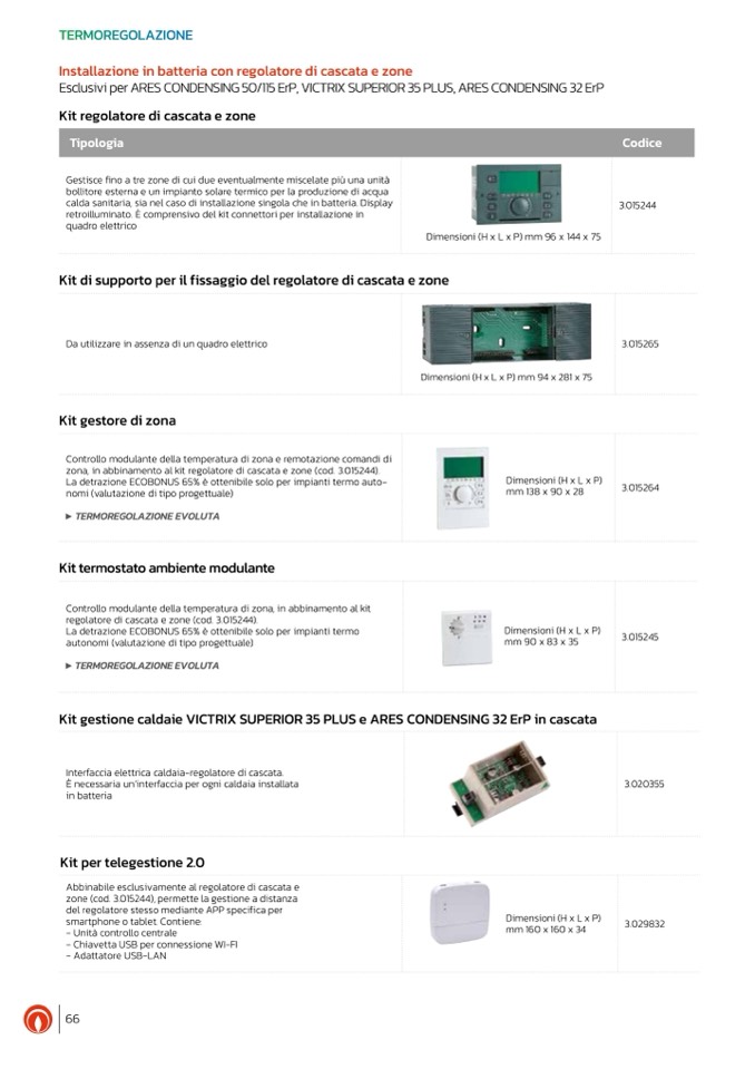 zona, in abbinamento al kit regolatore di cascata e zone (cod. 3.015244).
