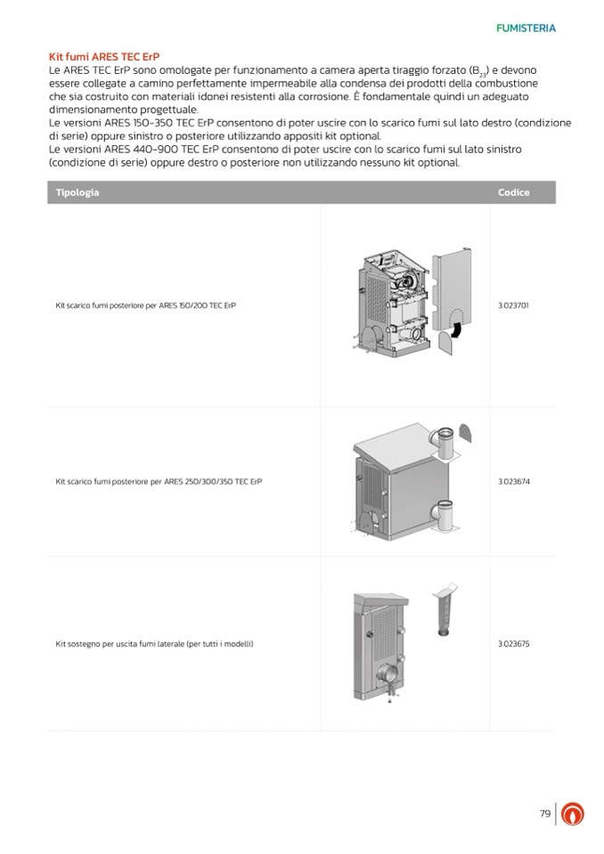 Le ARES TEC ErP sono omologate per funzionamento a camera aperta tiraggio forzato (B