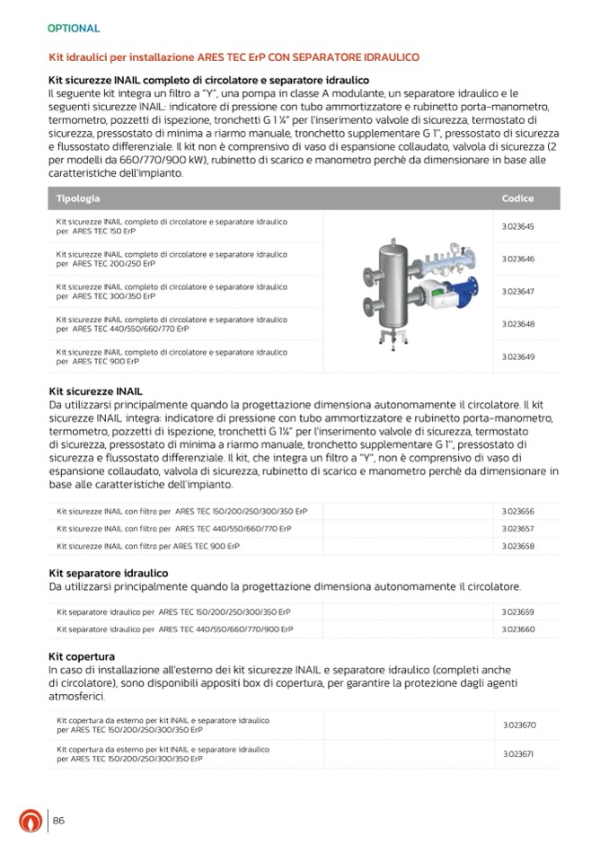 Kit idraulici per installazione ARES TEC ErP CON SEPARATORE IDRAULICO
