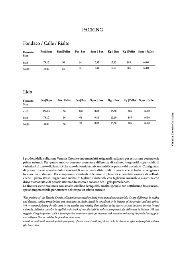 The products of the Venezia Cromie collection are extruded by hand from natural raw materials. So any differences in calibre
