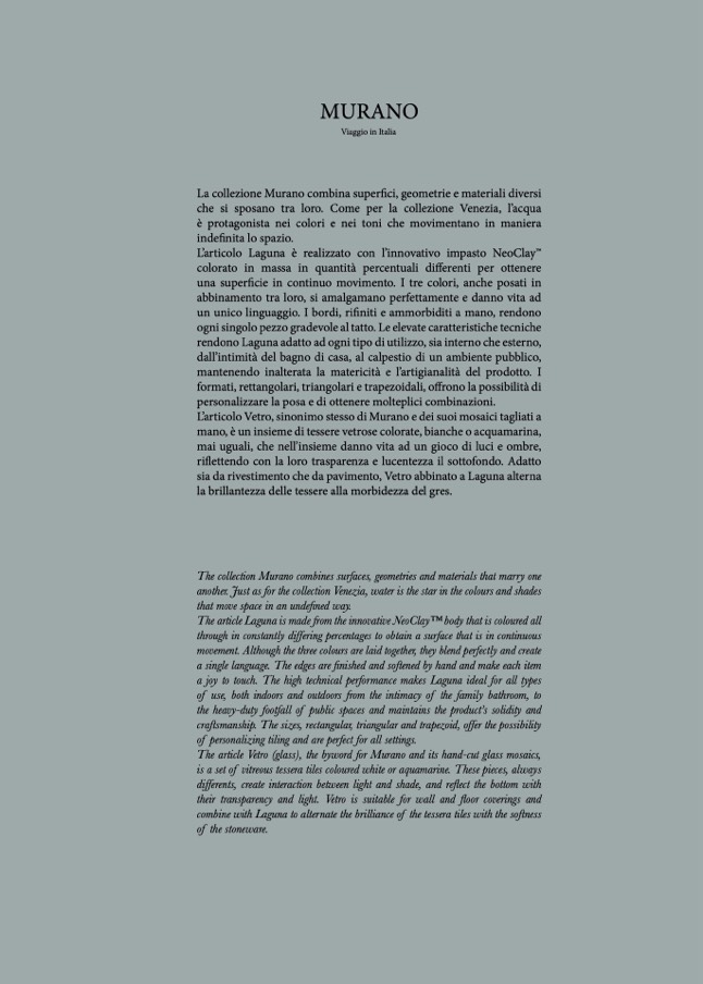 L’articolo Laguna è realizzato con l’innovativo impasto NeoClayTM