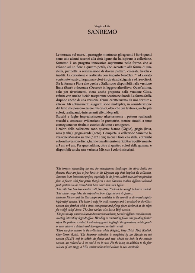 Grey-Green (Loto). The Sanremo collection is completed by the Mosaic on net