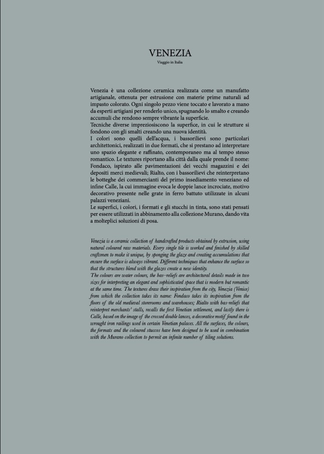 at the same time. The textures draw their inspiration from the city, Venezia (Venice)