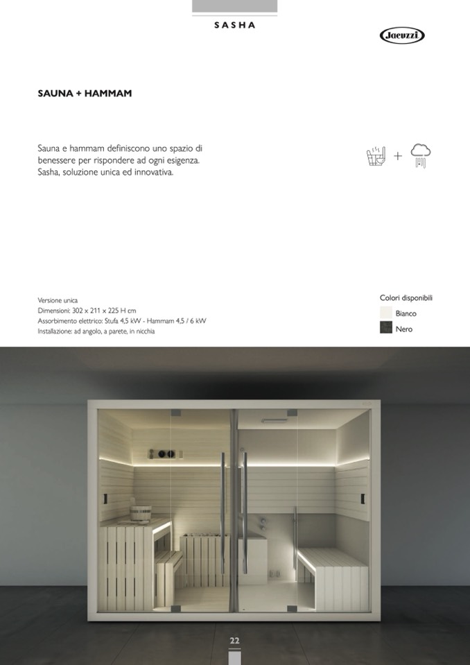 Assorbimento elettrico: Stufa 4,5 kW - Hammam 4,5 / 6 kW