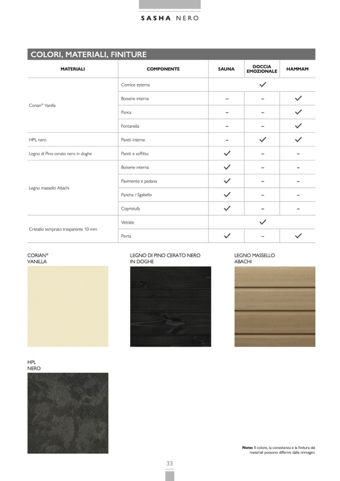 Note: Il colore, la consistenza e la finitura dei