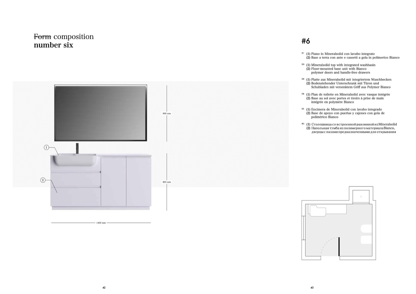 (1) Mineralsolid top with integrated washbasin
