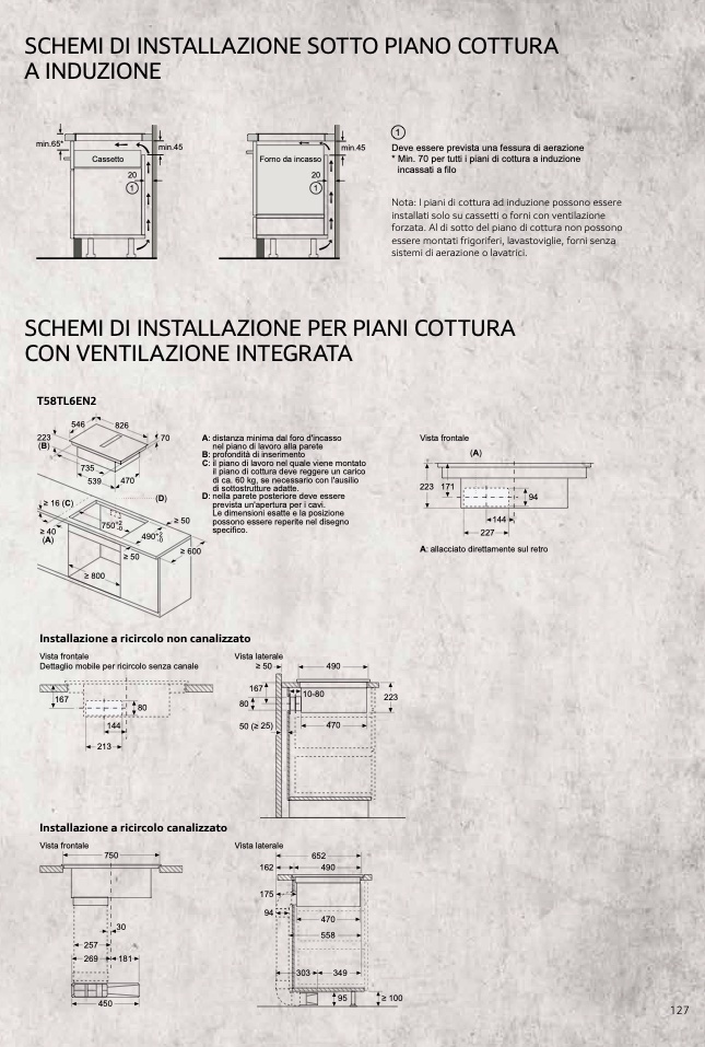* Min. 70 per tutti i piani di cottura a induzione