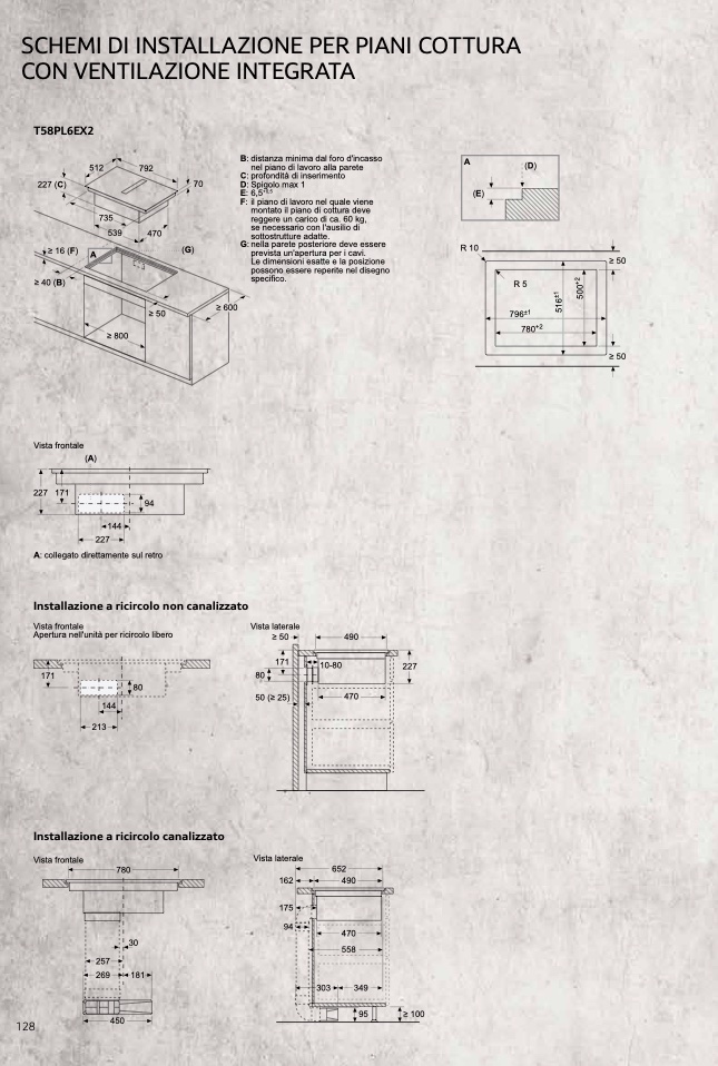 ≥ 40 (B)nel piano di lavoro alla parete