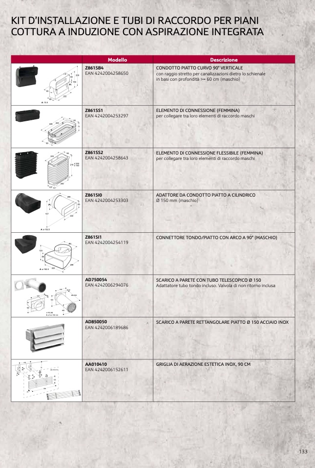 Adattatore tubo tondo incluso. Valvola di non ritorno inclusa