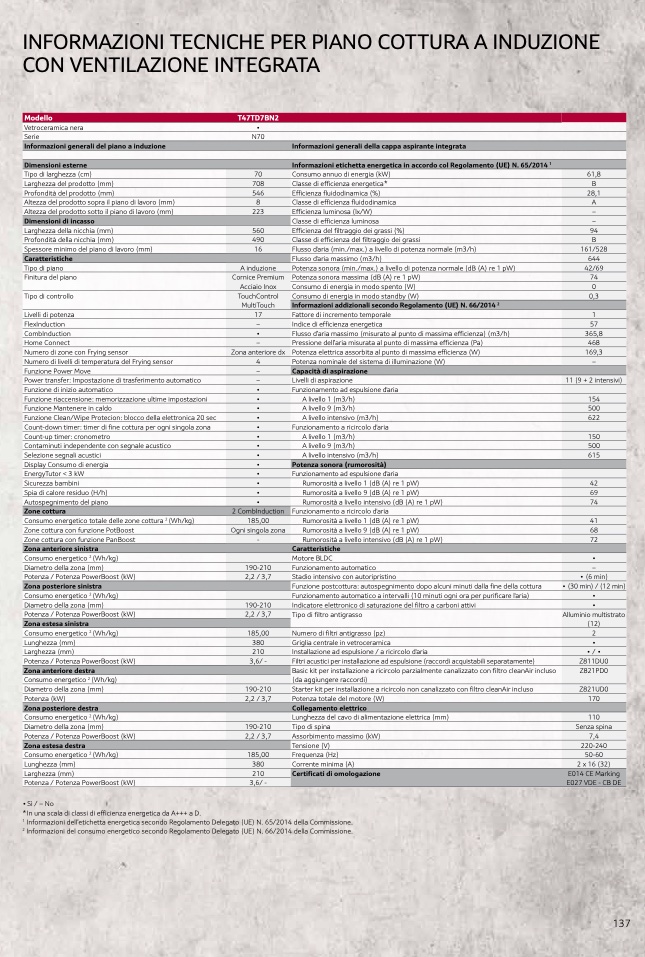Informazioni del consumo energetico secondo Regolamento Delegato (UE) N. 66/2014 della Commissione.