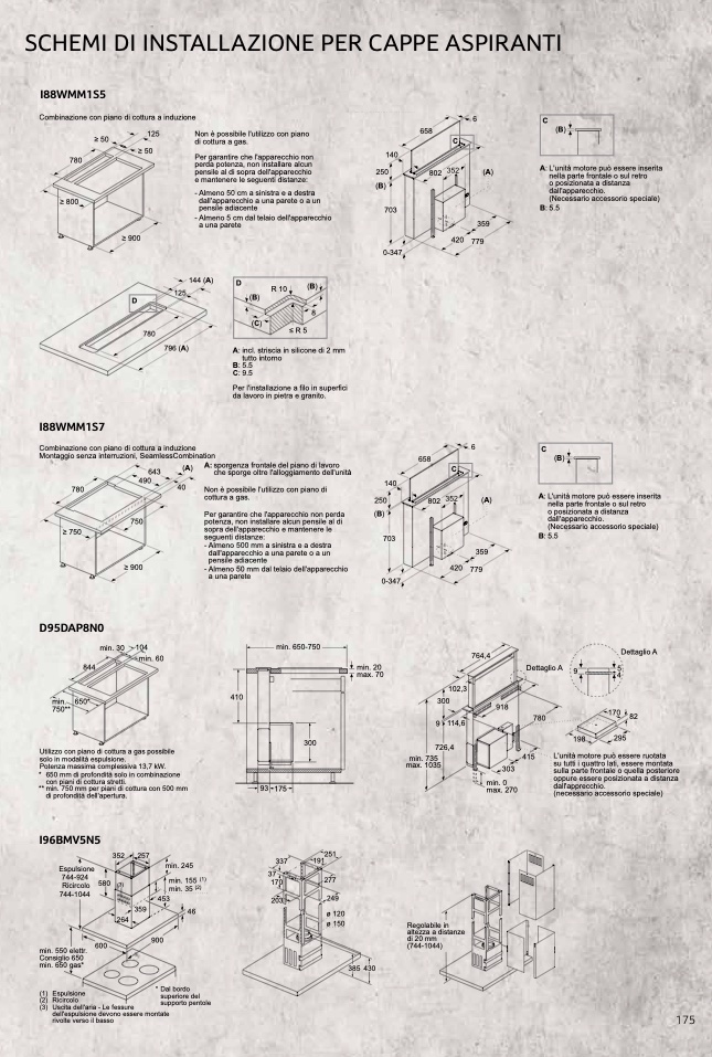 ** min. 750 mm per piani di cottura con 500 mm