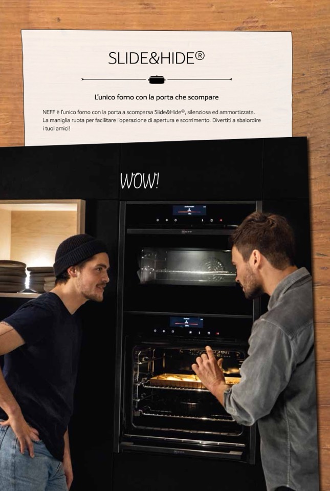 NEFF è l’unico forno con la porta a scomparsa Slide&Hide®, silenziosa ed ammortizzata.