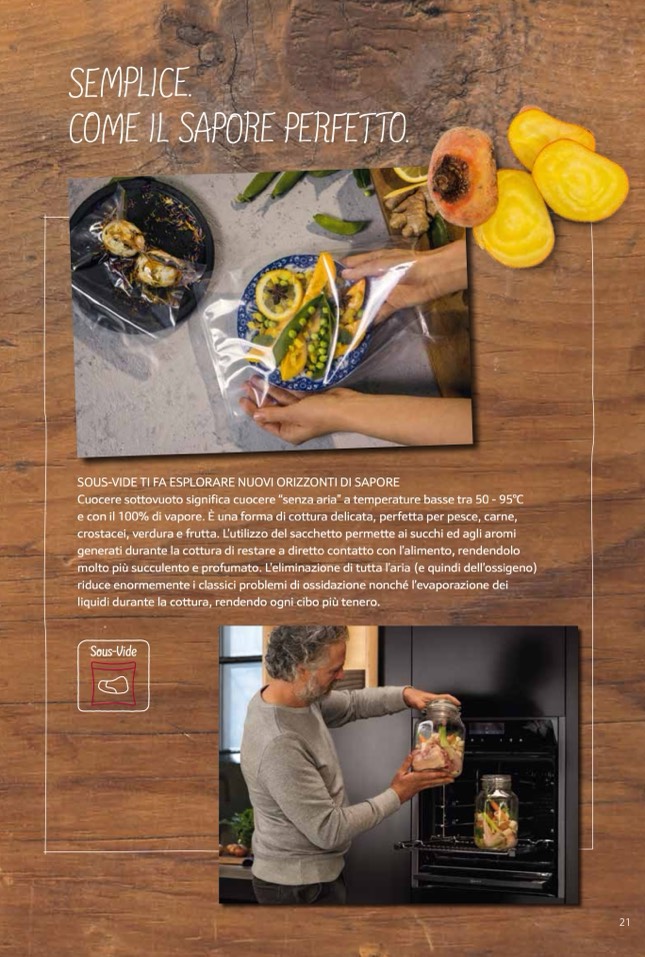 e con il 100% di vapore. È una forma di cottura delicata, perfetta per pesce, carne,