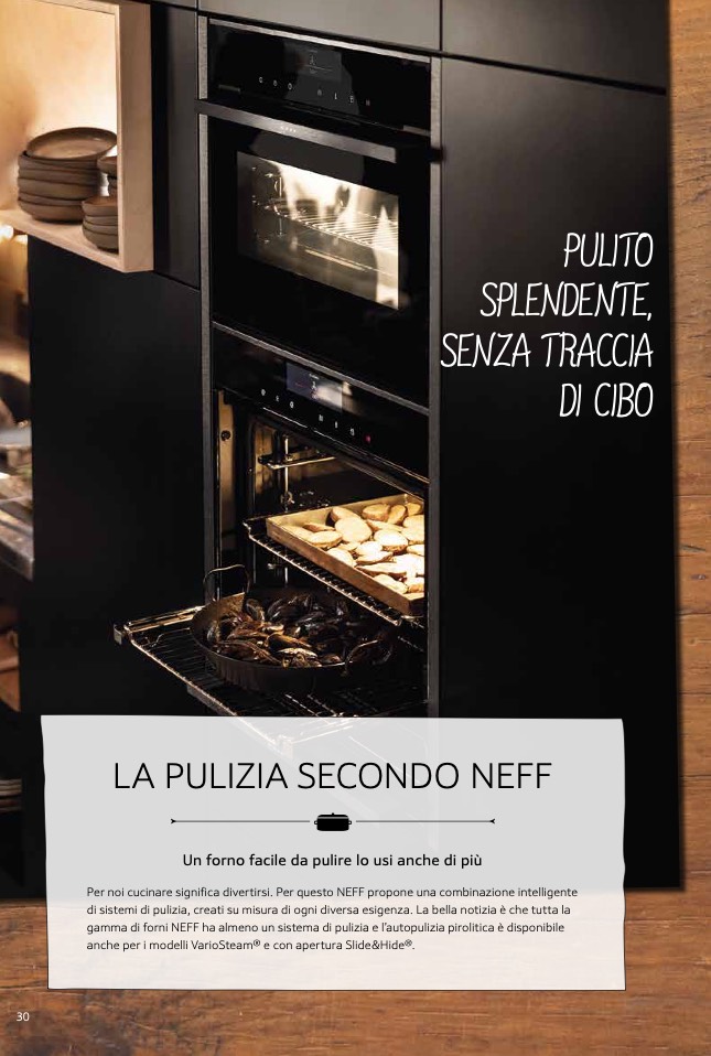 gamma di forni NEFF ha almeno un sistema di pulizia e l’autopulizia pirolitica è disponibile