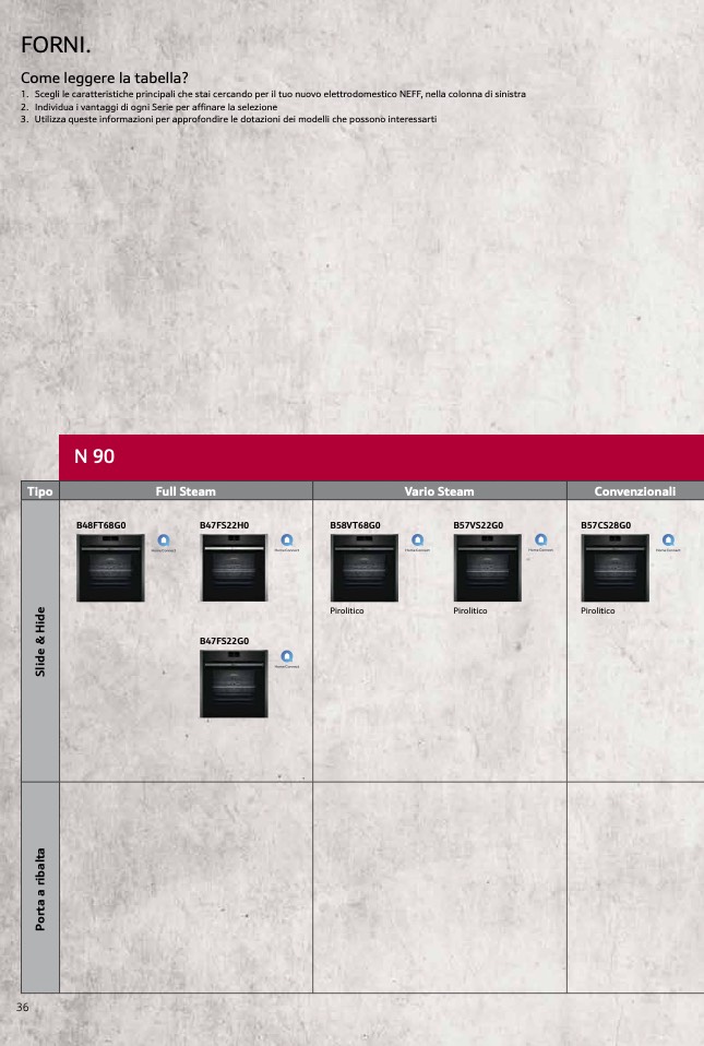 1. Scegli le caratteristiche principali che stai cercando per il tuo nuovo elettrodomestico NEFF, nella colonna di sinistra
