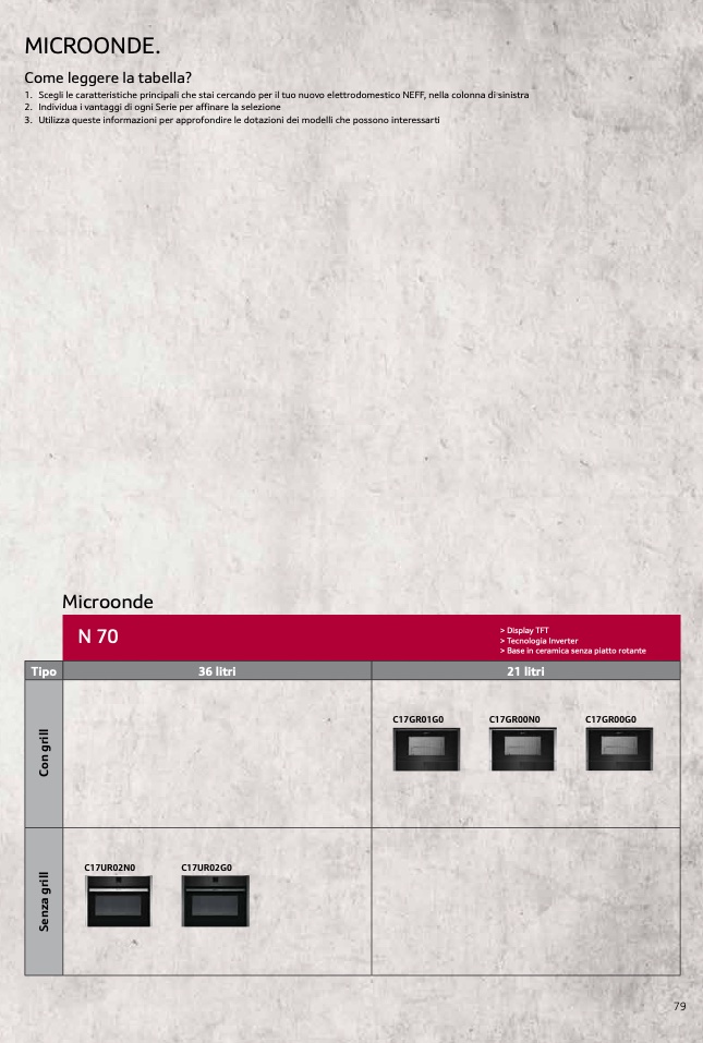 1. Scegli le caratteristiche principali che stai cercando per il tuo nuovo elettrodomestico NEFF, nella colonna di sinistra