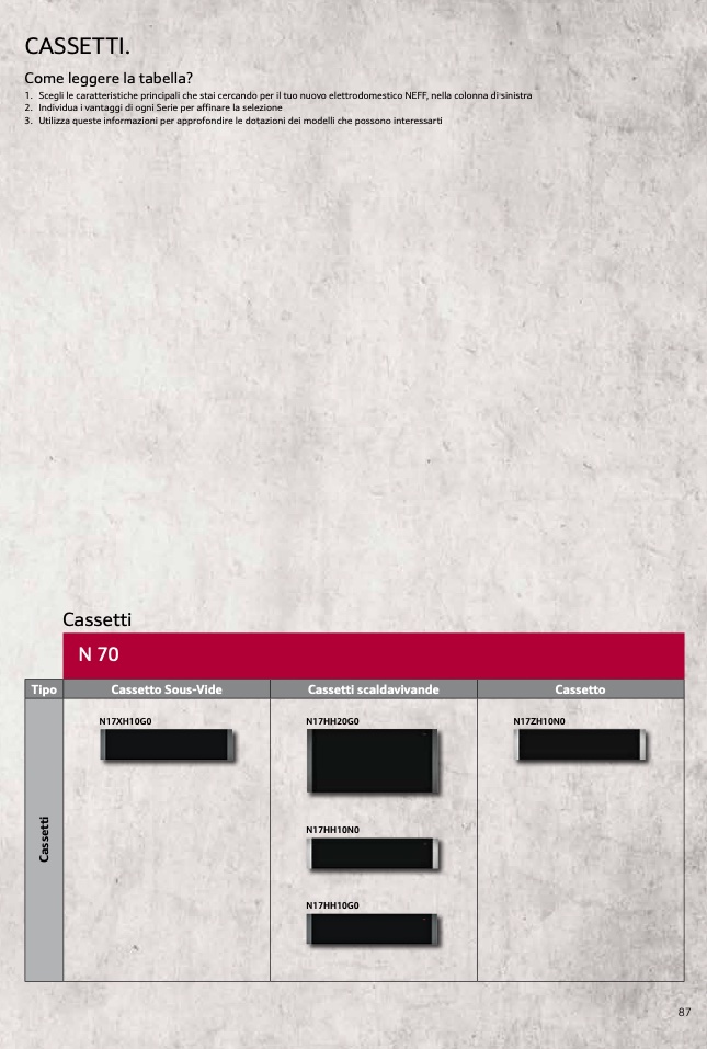 1. Scegli le caratteristiche principali che stai cercando per il tuo nuovo elettrodomestico NEFF, nella colonna di sinistra