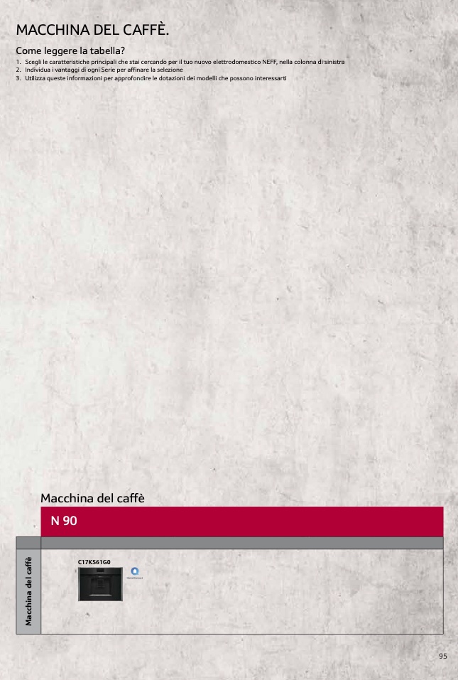 1. Scegli le caratteristiche principali che stai cercando per il tuo nuovo elettrodomestico NEFF, nella colonna di sinistra