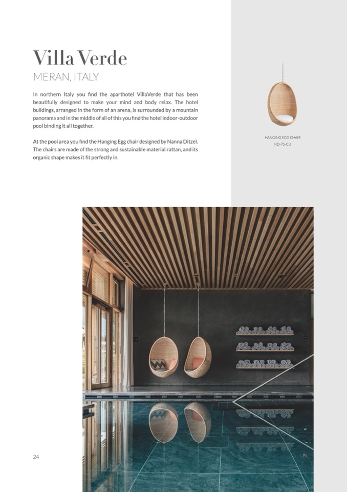 At the pool area you find the Hanging Egg chair designed by Nanna Ditzel.