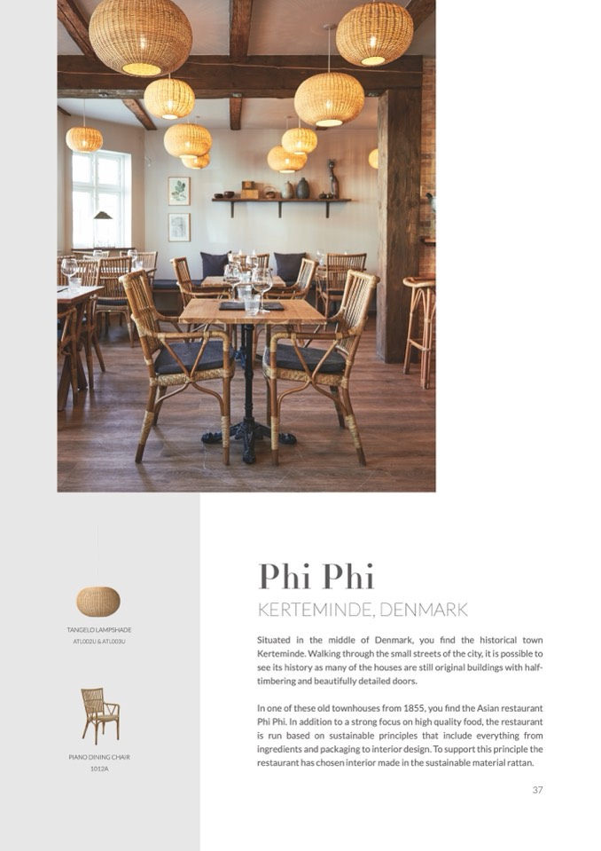 restaurant has chosen interior made in the sustainable material rattan.