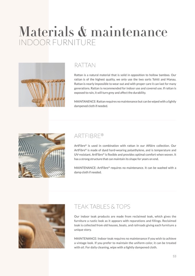 generations. Rattan is recommended for indoor use and covered use. If rattan is