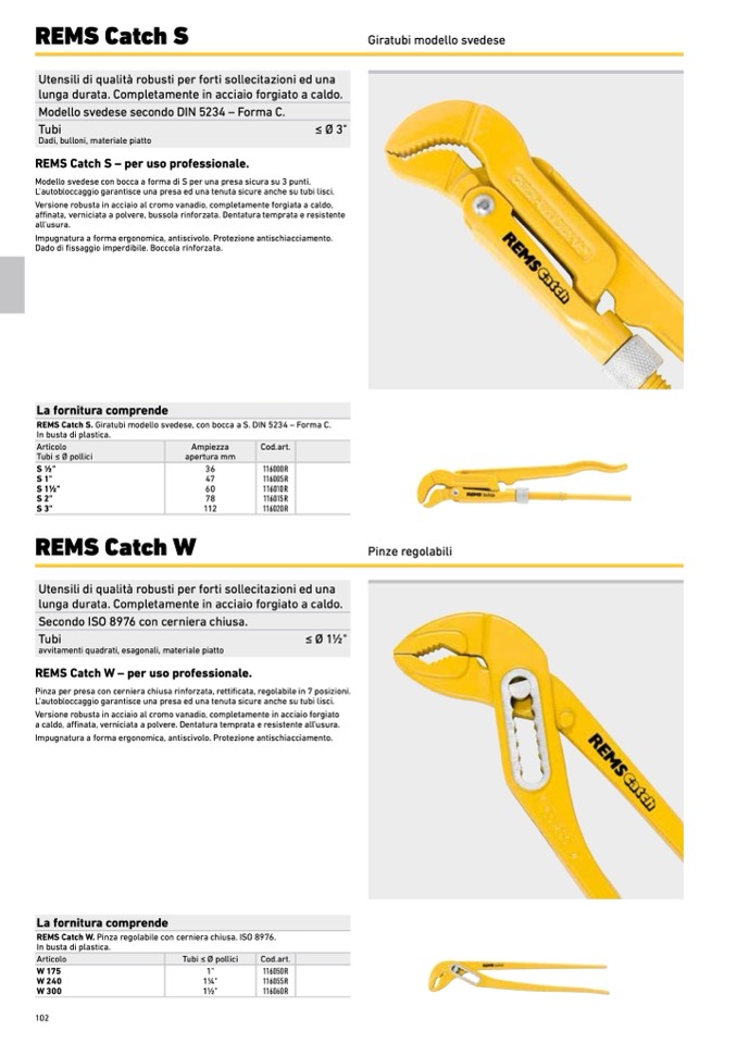 REMS Catch S. Giratubi modello svedese, con bocca a S. DIN 5234 – Forma C.