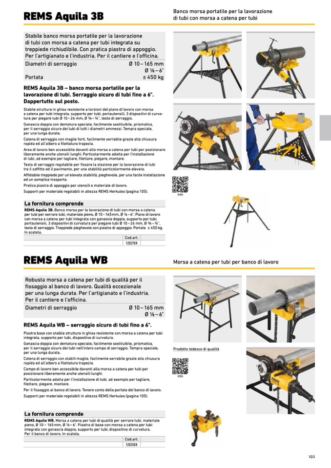 REMS Aquila 3B. Banco morsa per la lavorazione di tubi con morsa a catena