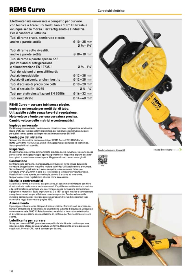 per tubi di rame a parete sottile per riscaldamento secondo EN 1057.