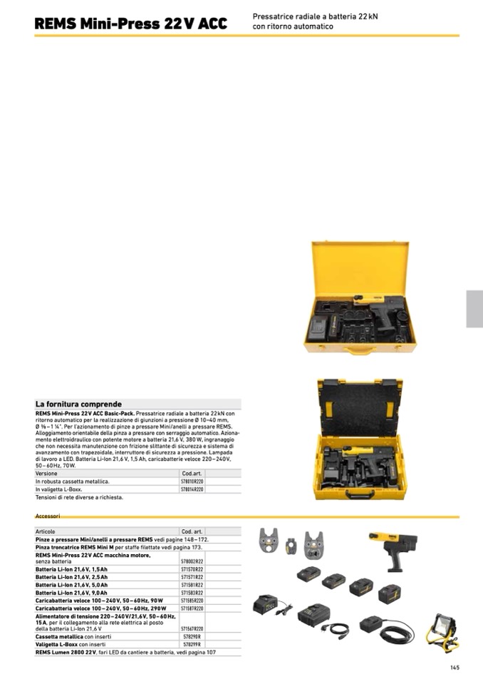 REMS Mini-Press 22 V ACC Basic-Pack. Pressatrice radiale a batteria 22 kN con