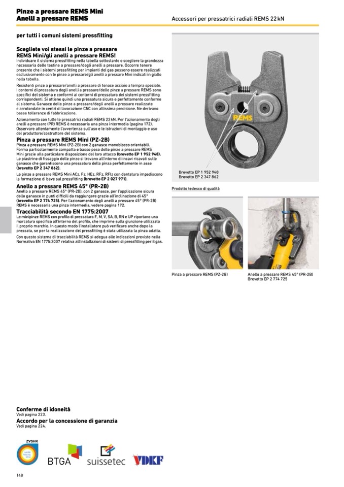 (brevetto EP 2 774 725). Per l’azionamento degli anelli a pressare 45° (PR-2B)