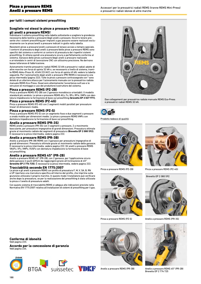 È necessaria la pinza intermedia, vedere pagina 222. Gli anelli a pressare REMS