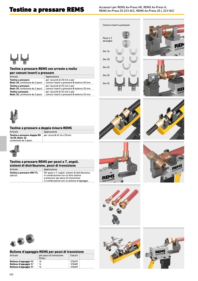 Testine a pressare REMS per pezzi a T, angoli,