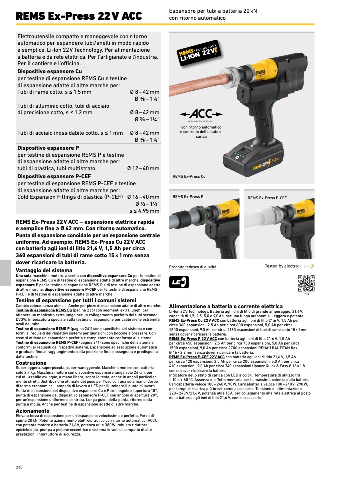 uniforme. Ad esempio, REMS Ex-Press Cu 22 V ACC