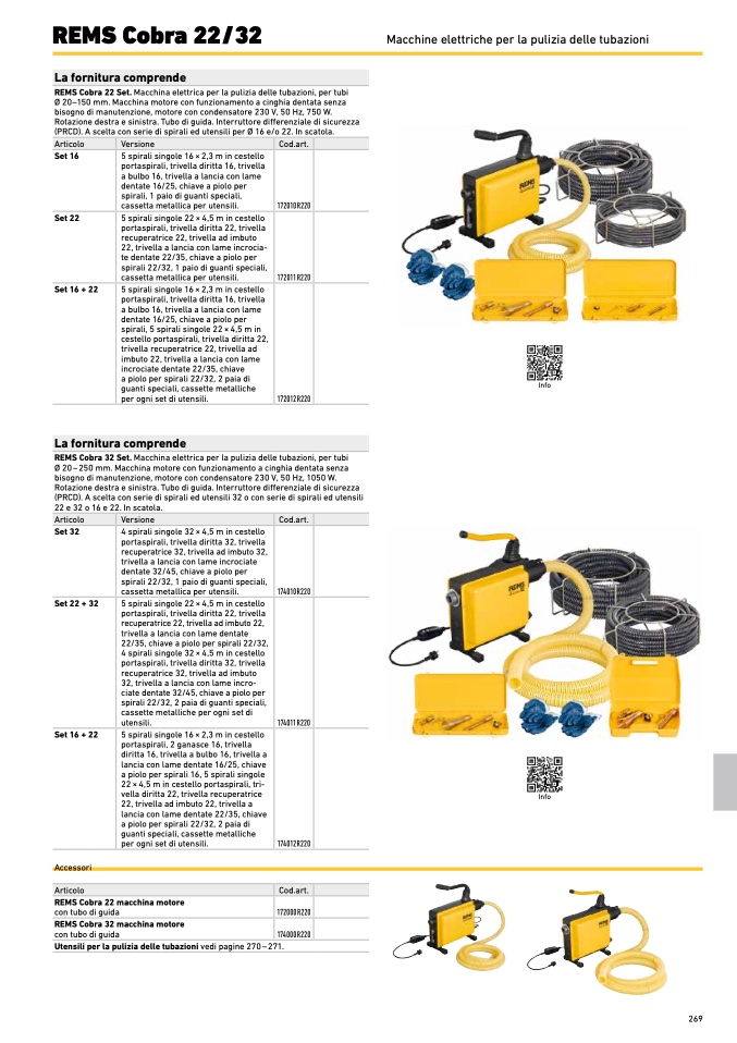 REMS Cobra 22 Set. Macchina elettrica per la pulizia delle tubazioni, per tubi