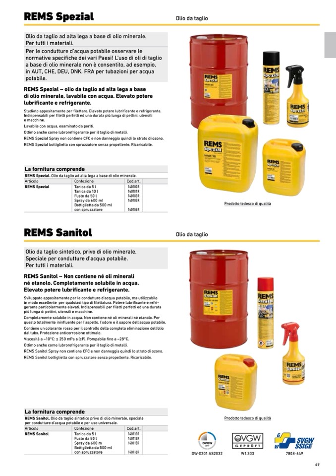 REMS Sanitol. Olio da taglio sintetico privo di olio minerale, speciale