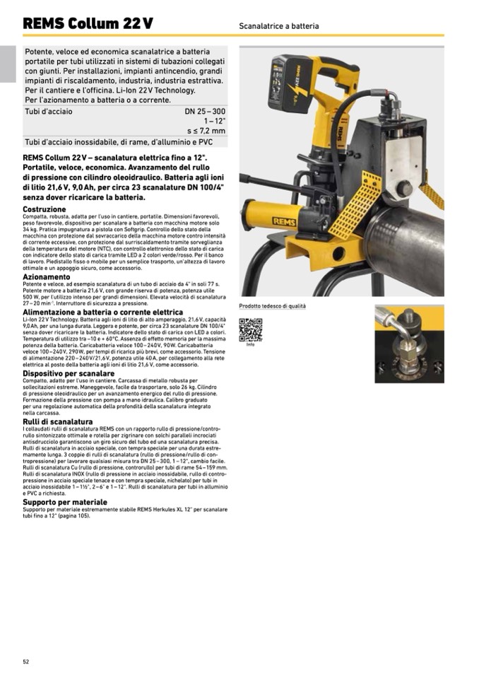 REMS Collum 22 V – scanalatura elettrica fino a 12".