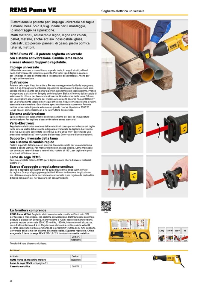 REMS Puma VE Set. Seghetto elettrico universale con Vario-Electronic (VE)