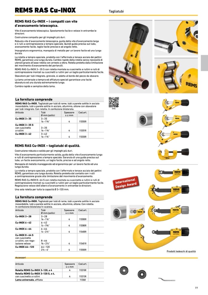 REMS RAS Cu-INOX – tagliatubi di qualità.