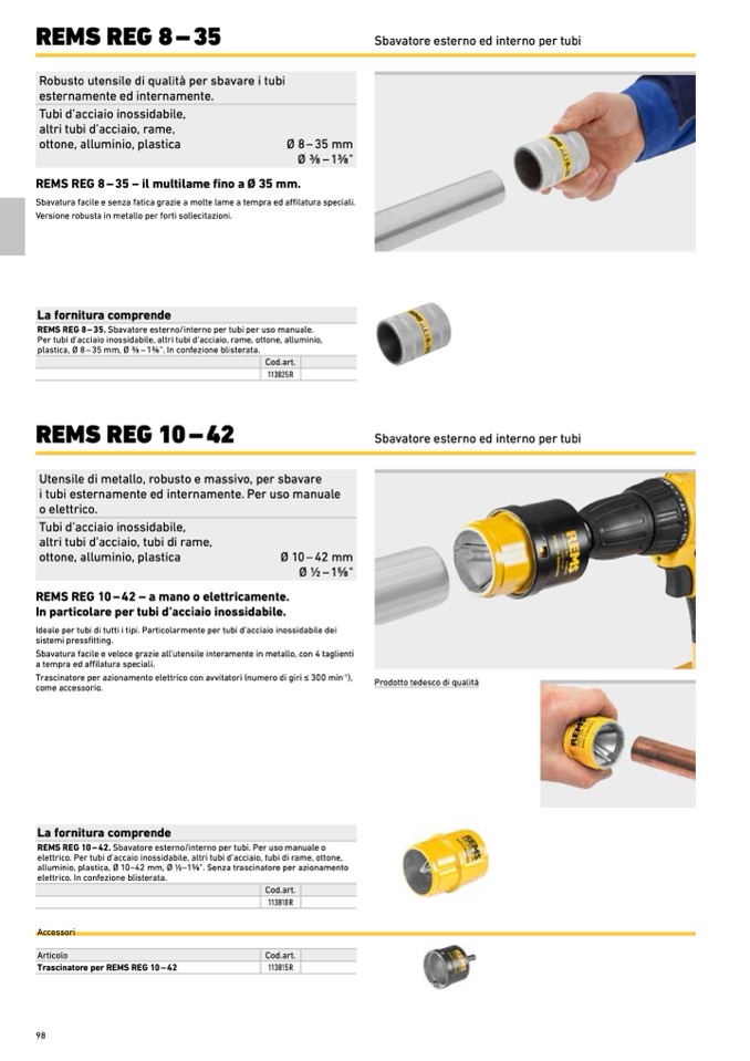 REMS REG 10 – 42. Sbavatore esterno/interno per tubi. Per uso manuale o