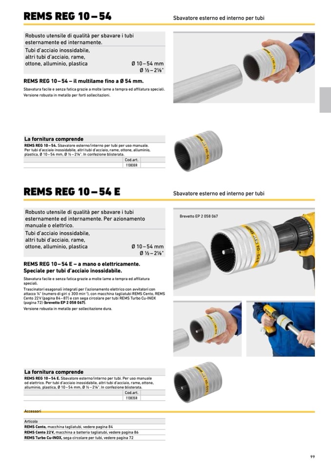 REMS REG 10 – 54 E. Sbavatore esterno/interno per tubi. Per uso manuale