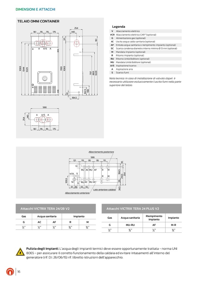 Scarico condensa diametro interno minimo Ø 13 mm (optional)