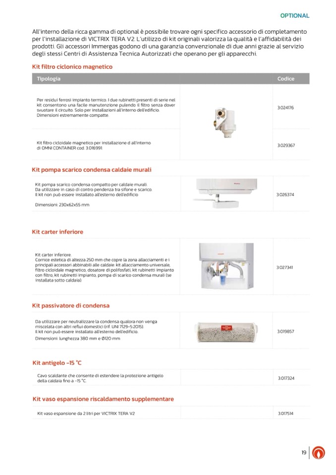 con filtro, kit rubinetti impianto, pompa di scarico condensa murali (se