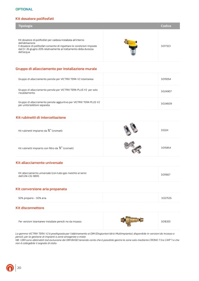 Gruppo di allacciamento pensile per VICTRIX TERA PLUS V2 per solo