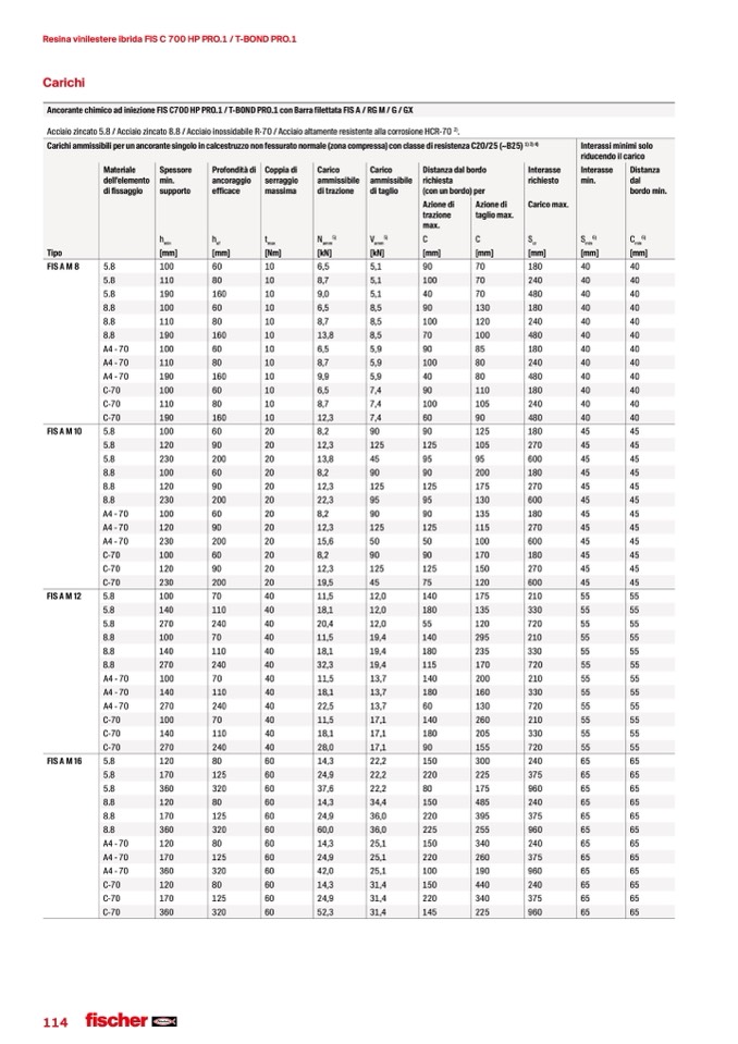 Ancorante chimico ad iniezione FIS C700 HP PRO.1 / T-BOND PRO.1 con Barra filettata FIS A / RG M / G / GX