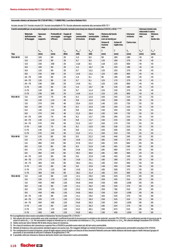 Ancorante chimico ad iniezione FIS C700 HP PRO.1 / T-BOND PRO.1 con Barra filettata FIS A