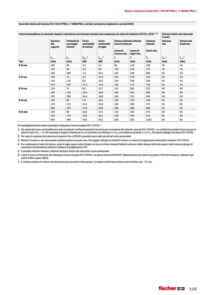 Ancorante chimico ad iniezione FIS C700 HP PRO.1 / T-BOND PRO.1 con Barra ad aderenza migliorata in acciaio B450C