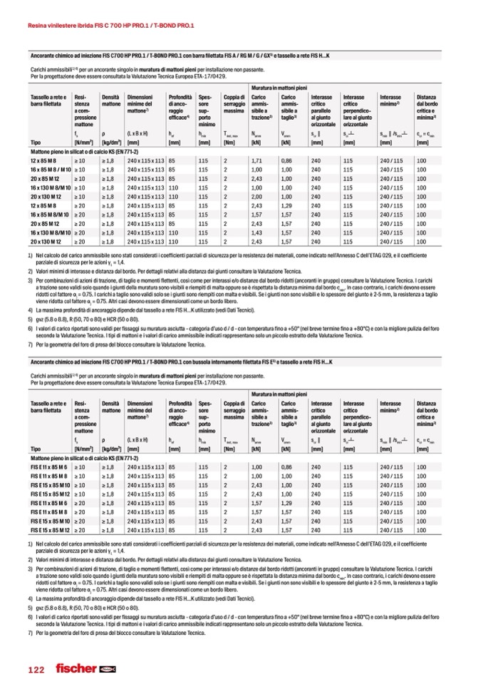 1) Nelcalcolodelcaricoammissibilesonostaticonsideratiicoefficientiparzialidisicurezzaperlaresistenzadeimateriali,comeindicatonell’AnnessoCdell’ETAG029,eilcoefficiente