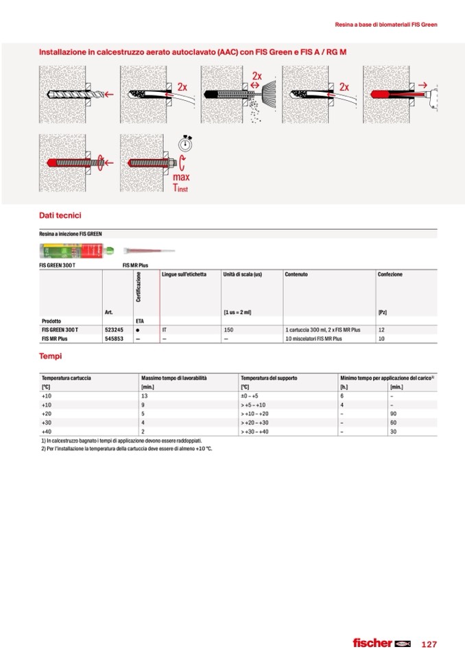 Installazione in calcestruzzo aerato autoclavato (AAC) con FIS Green e FIS A / RG M