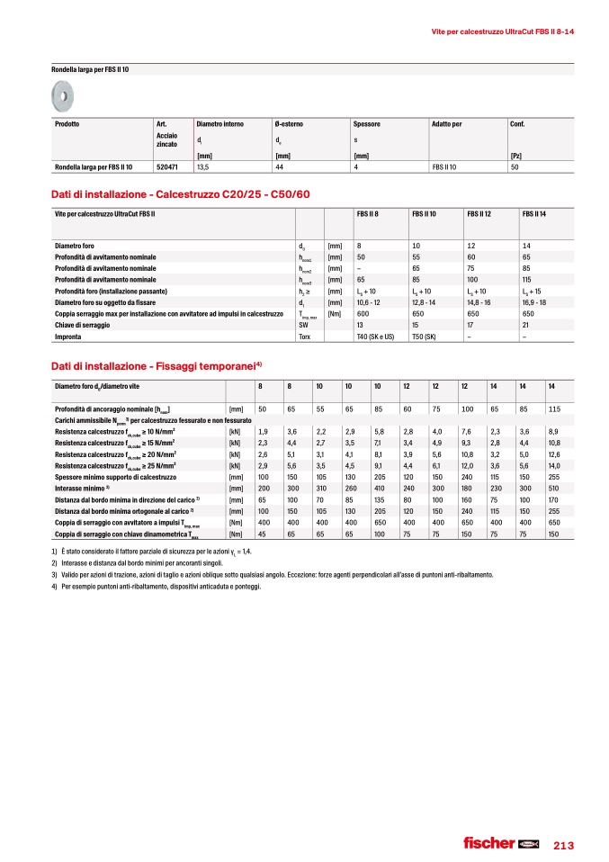 Dati di installazione - Calcestruzzo C20/25 - C50/60