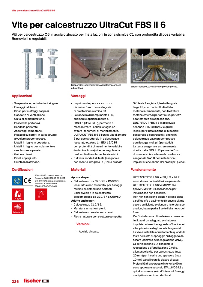 Viti per calcestruzzo Ø6 in acciaio zincato per installazioni in zona sismica C1 con profondità di posa variabile.